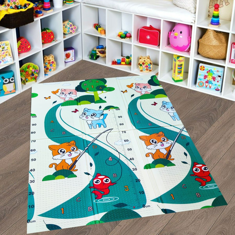 Дитячий складаний розвиваючий термо килимок 120х180х0,8см "Кошенята на риболовлі | Цуценята" (275)
