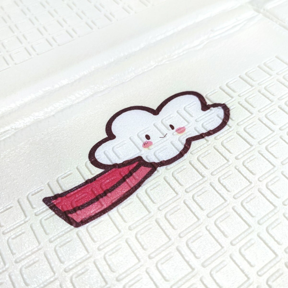 Основний матеріал килимка – спінений поліуретан (ХРЕ). Цей матеріал широко застосовується, він має термоізоляційний ефект, тобто не пропускає холод, а також не викликає алергію. Верхнє покриття килимка - харчова плівка, яка робить килимок вологостійким і захищає малюнок від зносу.