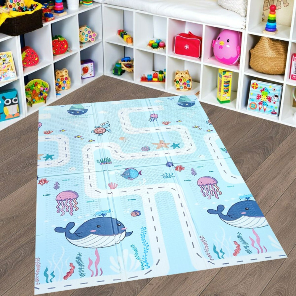 Дитячий складаний розвиваючий термо килимок 120х180х0,8см "Підводна дорога | Зростомір" (268) SW-00001314