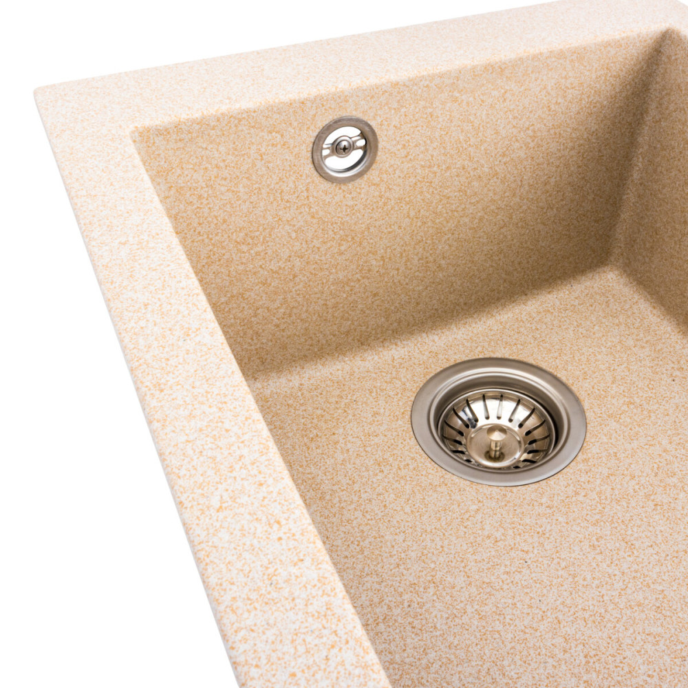 Гранітна мийка для кухні 4150 SOKIL українського бренду Platinum - це стильна, врізна, прямокутна мийка, яка своїм виглядом чудово доповнить дизайн вашої кухні. Мийка на 80% складається з кварцу та на 20% з надзвичайно твердої акрилової смоли, завдяки чому невибаглива у догляді, а також має великий запас міцності. Мийка має матову фактуру і приємний для ока колір, що дозволяє їй легко вписатися в інтер'єр кухні. Мийка виготовлена в Україні із якісної німецької сировини за технологією Solid Surface з дотриманням усіх необхідних стандартів.