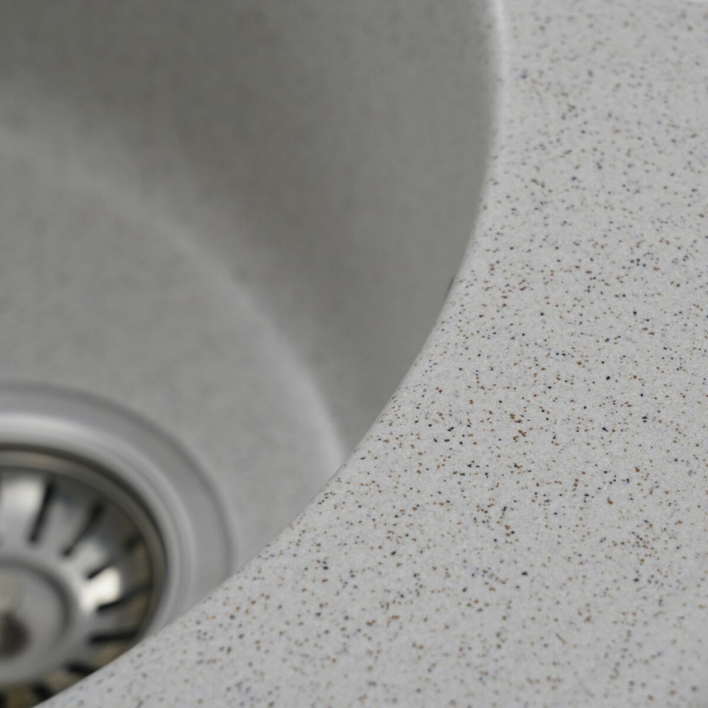 Мийка на 80% складається з кварцу та на 20% з надзвичайно твердої акрилової смоли, завдяки чому невибаглива у догляді, а також має великий запас міцності.
