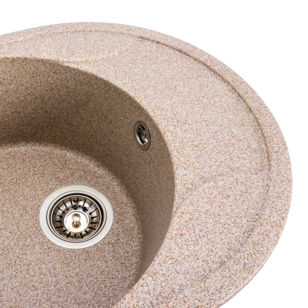 Гранітна мийка для кухні 5847 ONYX українського бренду Platinum - це стильна, врізна, овальна мийка, яка своїм виглядом чудово доповнить дизайн вашої кухні. Мийка на 80% складається з кварцу та на 20% з надзвичайно твердої акрилової смоли, завдяки чому невибаглива у догляді, а також має великий запас міцності. Розміри чаші, 390х390х185 мм, роблять її дуже місткою та зручною у використанні, а наявність відділу для сушіння робить процес миття посуду швидким і легким. Мийка має матову фактуру і приємний для ока колір що дозволяє їй легко вписатися в інтер'єр кухні. Мийка виготовлена ​​в Україні із якісної німецької сировини за технологією Solid Surface з дотриманням усіх необхідних стандартів.