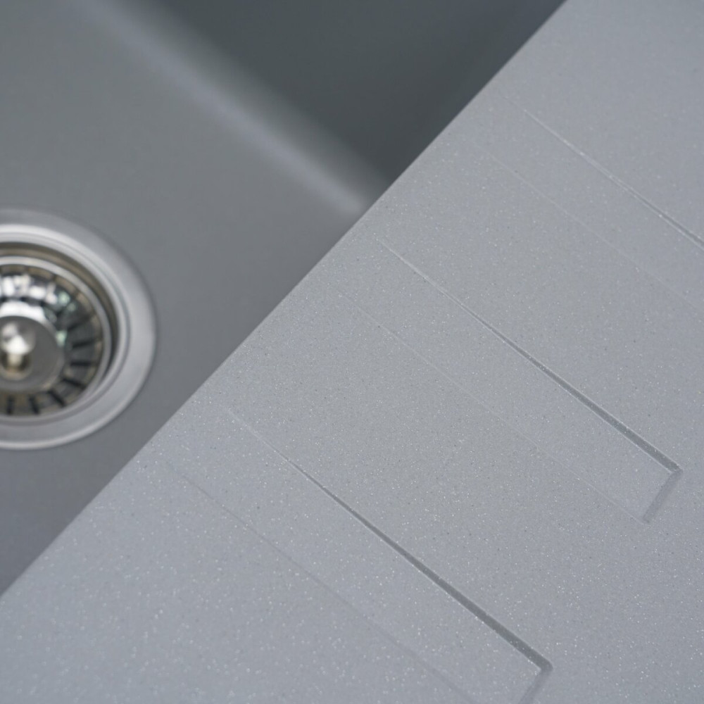 Мийка на 80% складається з кварцу та на 20% з надзвичайно твердої акрилової смоли, завдяки чому невибаглива у догляді, а також має великий запас міцності.
