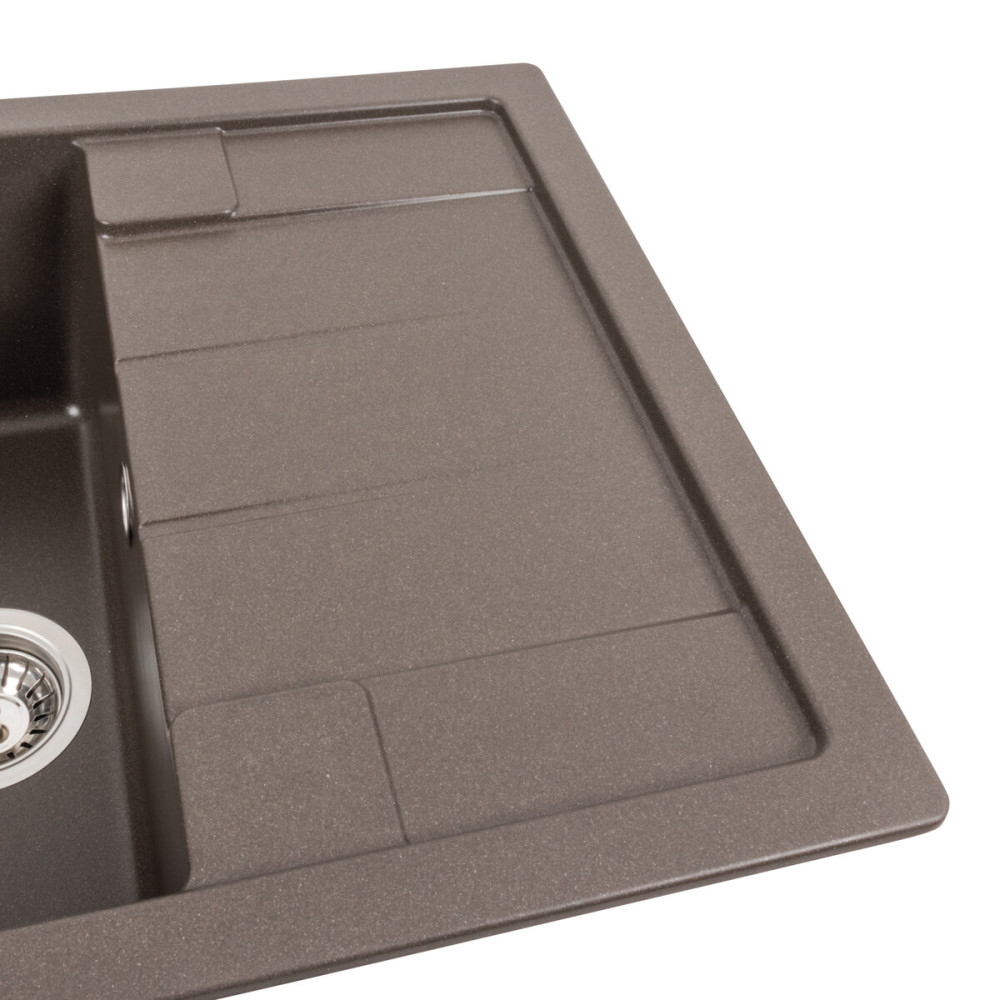 Мийка на 80% складається з кварцу та на 20% з надзвичайно твердої акрилової смоли, завдяки чому невибаглива у догляді, а також має великий запас міцності.