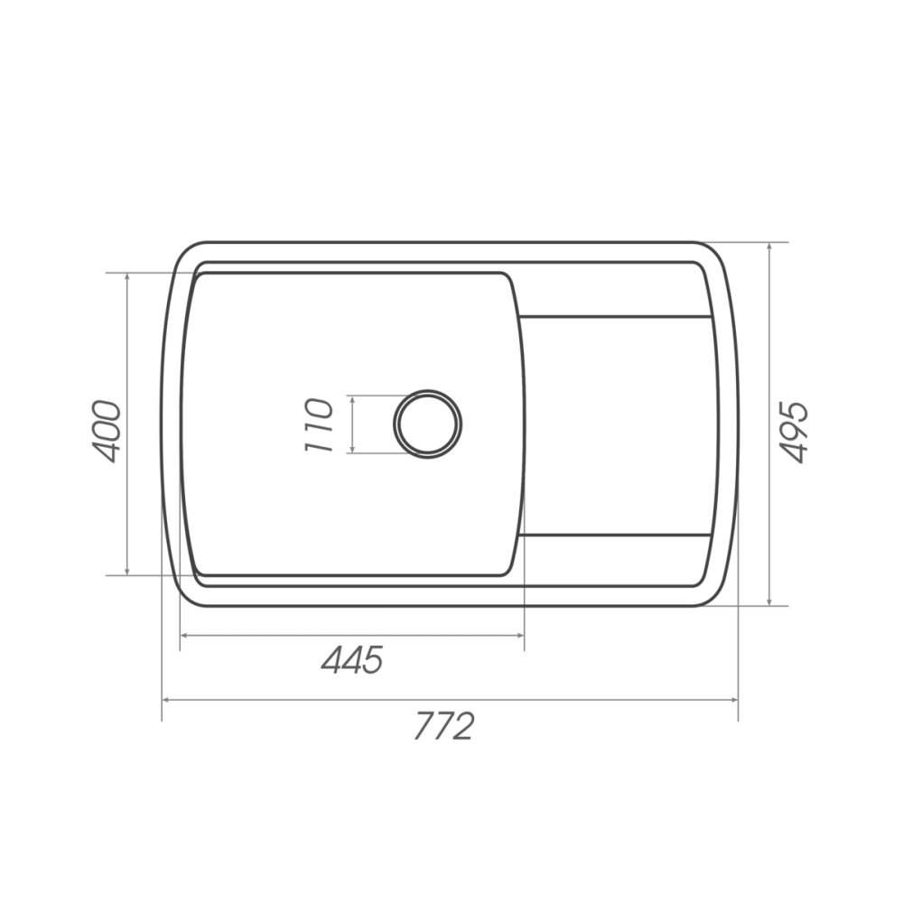 Розміри мийки – 772x495х200 мм, вага – 16.1 кг, сифон – євросифон з широкою горловиною, 110 мм.