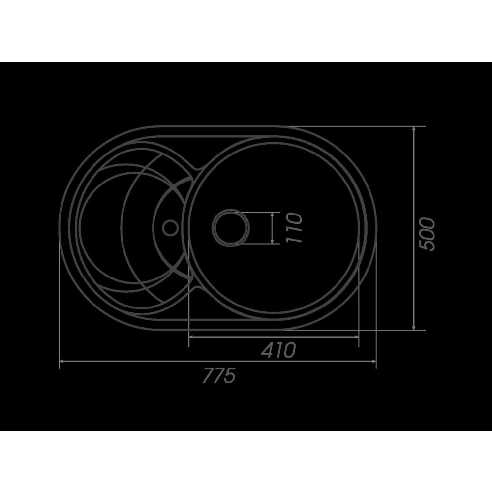Розміри мийки – 775x500х195 мм, вага – 11.7 кг, сифон – євросифон з широкою горловиною, 110 мм.