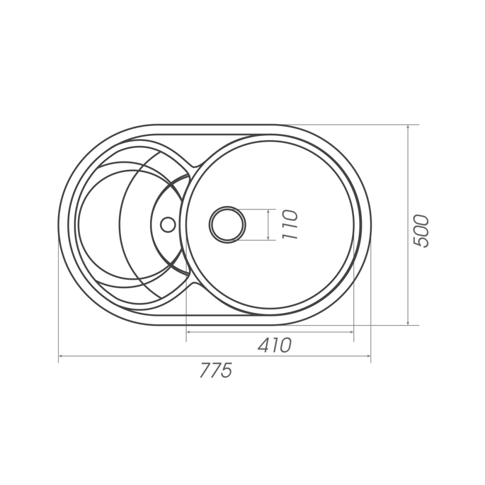Розміри мийки – 775x500х195 мм, вага – 11.7 кг, сифон – євросифон з широкою горловиною, 110 мм.