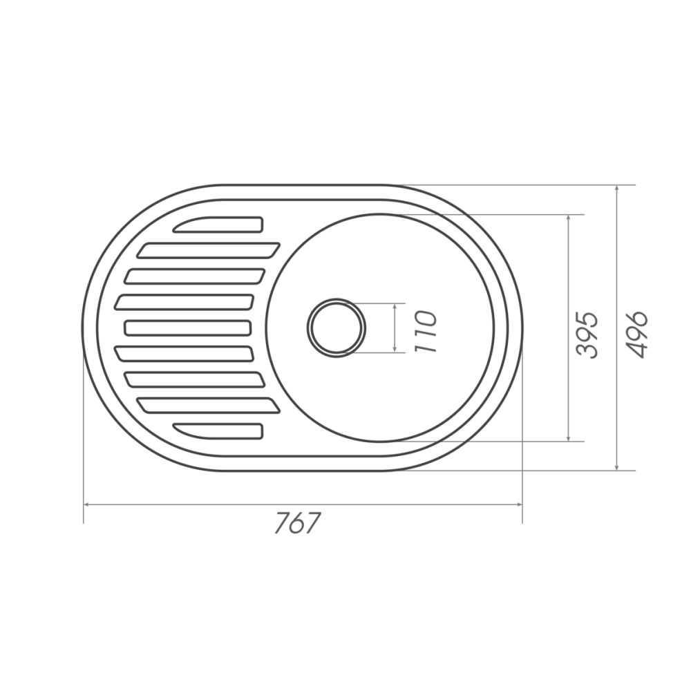 Розміри мийки – 767х496х190 мм, вага – 9,1 кг, сифон – євросифон з широкою горловиною, 110 мм.