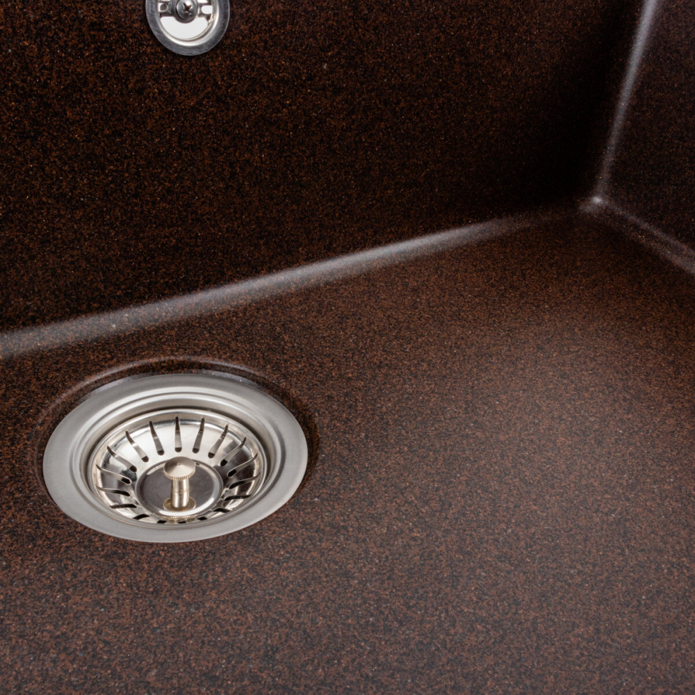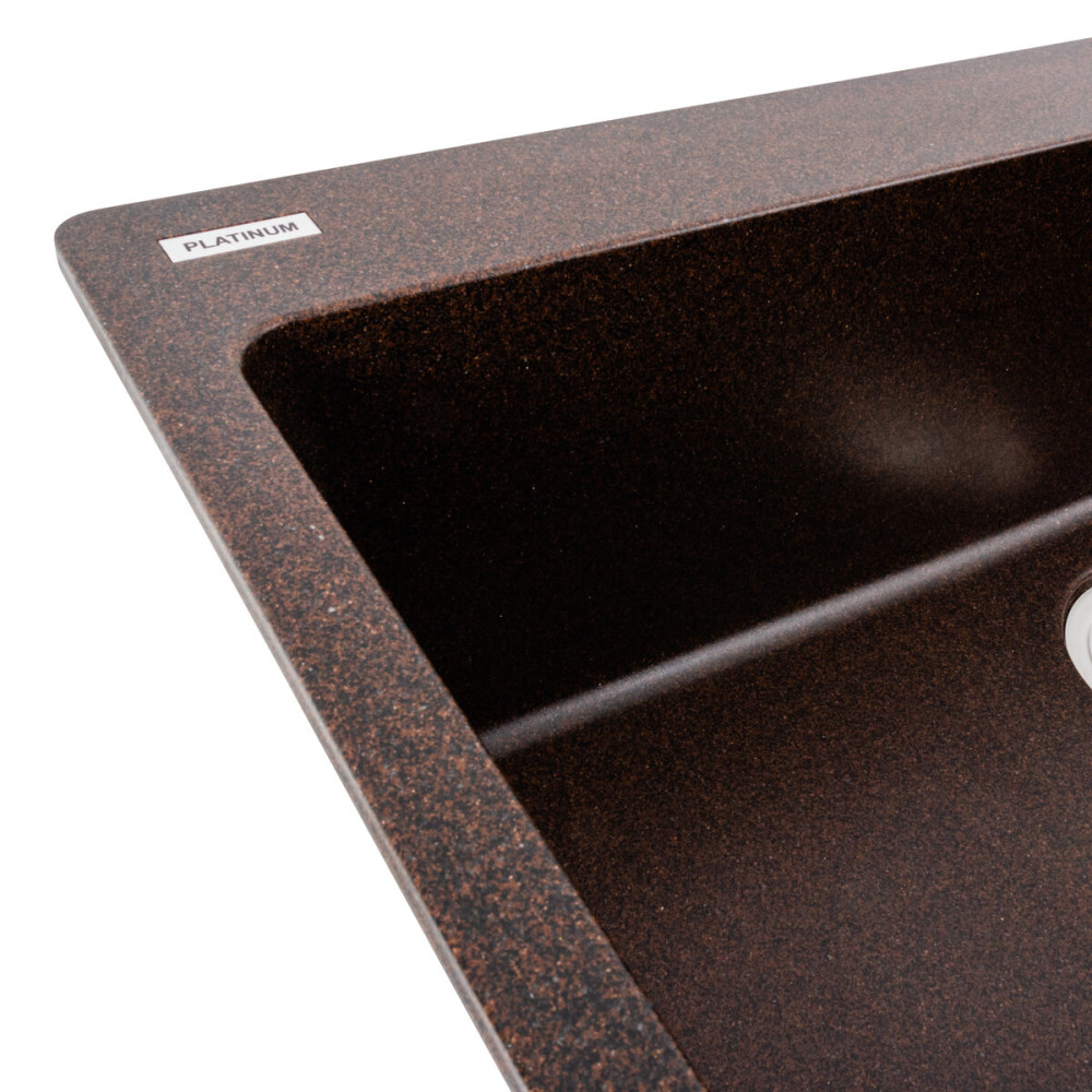 Гранітна мийка для кухні 7850 BOGEMA українського бренду Platinum - це стильна, врізна, прямокутна мийка, яка своїм виглядом чудово доповнить дизайн вашої кухні. Мийка на 80% складається з кварцу та на 20% з надзвичайно твердої акрилової смоли, завдяки чому невибаглива у догляді, а також має великий запас міцності. Мийка має матову фактуру і приємний для ока колір, що дозволяє їй легко вписатися в інтер'єр кухні. Мийка виготовлена в Україні із якісної німецької сировини за технологією Solid Surface з дотриманням усіх необхідних стандартів.