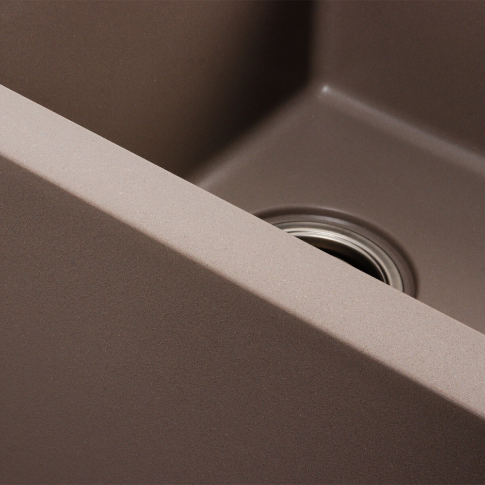 Мийка на 80% складається з кварцу та на 20% з надзвичайно твердої акрилової смоли, завдяки чому невибаглива у догляді, а також має великий запас міцності.