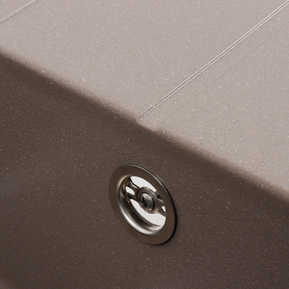 Мийка на 80% складається з кварцу та на 20% з надзвичайно твердої акрилової смоли, завдяки чому невибаглива у догляді, а також має великий запас міцності.
