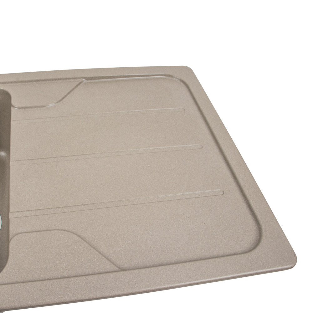 Мийка на 80% складається з кварцу та на 20% з надзвичайно твердої акрилової смоли, завдяки чому невибаглива у догляді, а також має великий запас міцності.