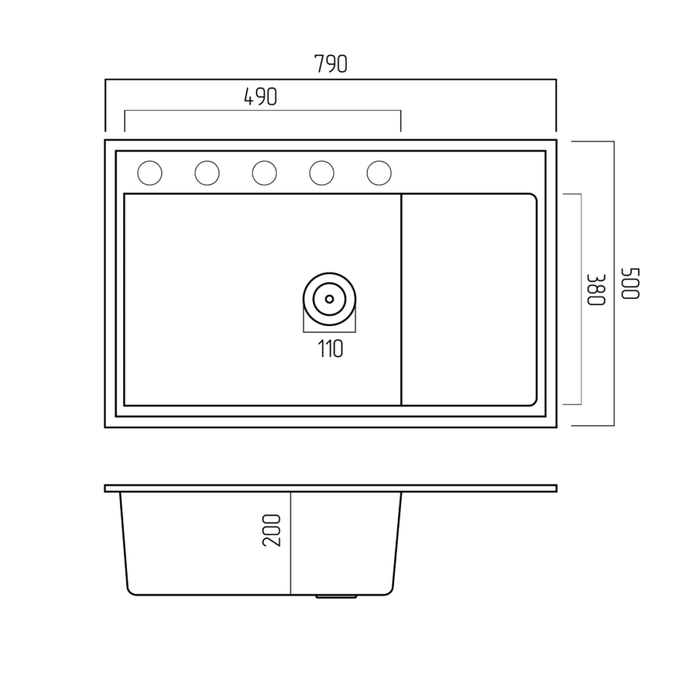 Ця мийка має розміри, які роблять її ідеальним вибором для різних кухонь. З розмірами 790х500х200мм, вона легко впишеться навіть у невеликі простори, забезпечуючи високий рівень зручності та функціональності.Розмір чаші 490x380x200мм.