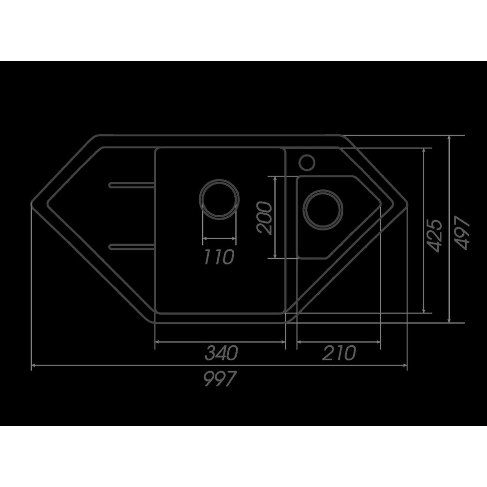 Розміри мийки – 997х497х205 мм, вага – 12,6 кг, сифон – євросифон з широкою горловиною, 110 мм.