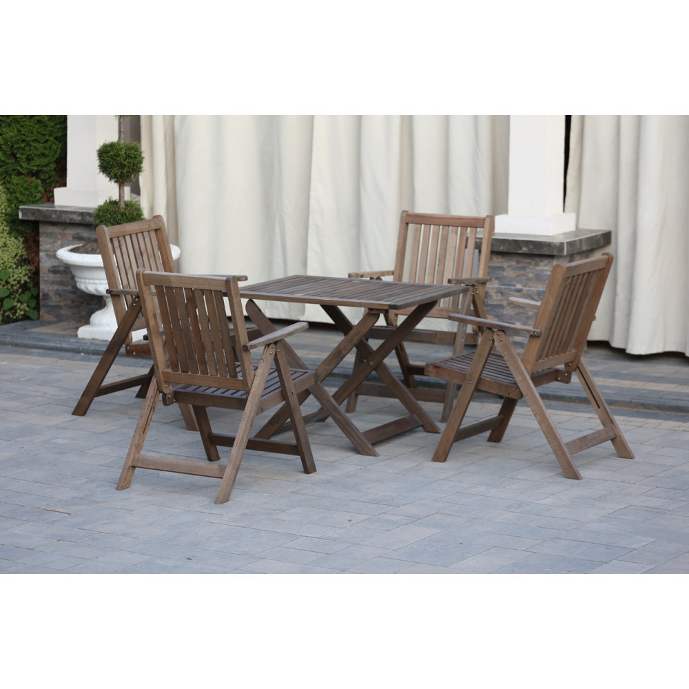 Стильний та функіональний комплект дерев`яних меблів Трансформер Мідл виготовлено із натурального дерева - буку. У набір входить розкладний стіл та 4 крісла. Комплект зручний у транспортуванні.