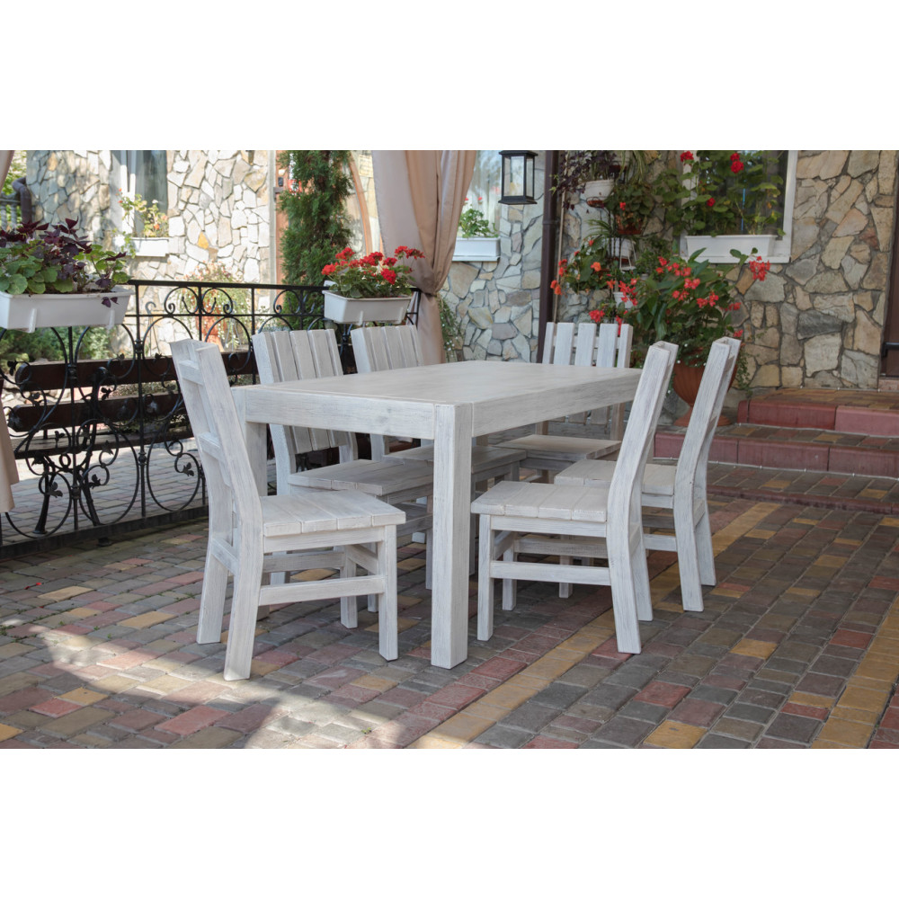 Комплект дерев’яних меблів для саду Komfu wood прекрасно підійде для літніх терас, заміських будинків, кафе та ресторанів. У набір входить прямокутний стіл та 6 стільців. Набір виготовлено із дерева хвойних порід. Дерево покрите антисептичною фарбою.