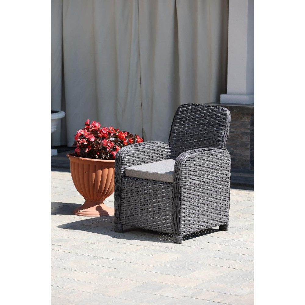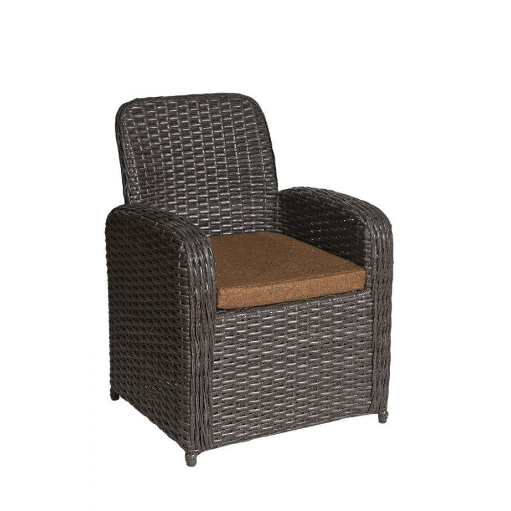 Стильне крісло Амелія має зручні пологі підлокітники, що добре підтримують руку. До крісла надається подушка, яка гарантовано забезпечить максимум релаксу і дозволить відпочити по-справжньому. Крісло Амелія виготовлене зі штучного ротангу, який стійкий до УФ-променів, різких перепадів температур та зміни вологості, не деформується при використанні , легкий у догляді. Основа - металевий каркас.