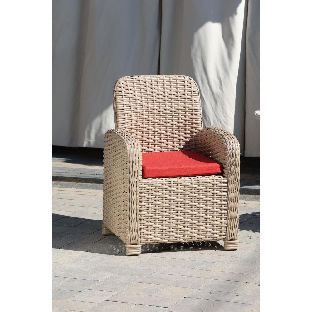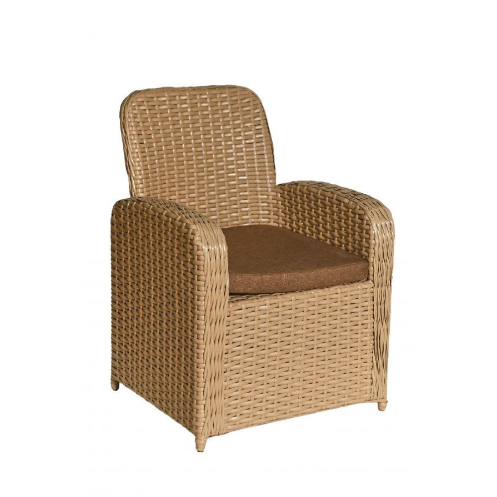 Стильне крісло Амелія має зручні пологі підлокітники, що добре підтримують руку. До крісла надається подушка, яка гарантовано забезпечить максимум релаксу і дозволить відпочити по-справжньому. Крісло Амелія виготовлене зі штучного ротангу, який стійкий до УФ-променів, різких перепадів температур та зміни вологості, не деформується при використанні , легкий у догляді. Основа - металевий каркас.