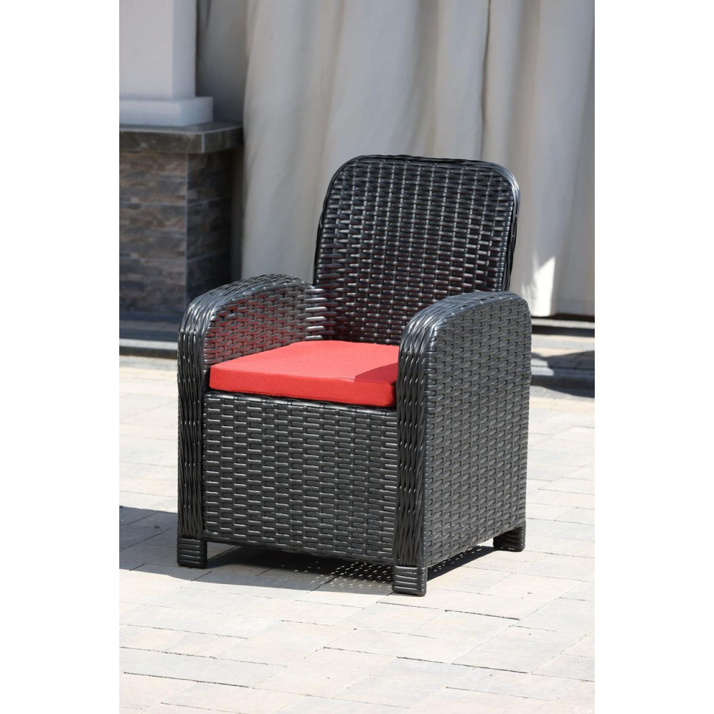 Стильне крісло Амелія має зручні пологі підлокітники, що добре підтримують руку. До крісла надається подушка, яка гарантовано забезпечить максимум релаксу і дозволить відпочити по-справжньому. Крісло Амелія виготовлене зі штучного ротангу, який стійкий до УФ-променів, різких перепадів температур та зміни вологості, не деформується при використанні , легкий у догляді. Основа - металевий каркас.