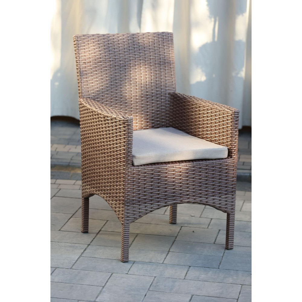 Елегантне ротангове крісло МОНАКО прекрасно впишеться в інтер’єр кафе, ресторану, тераси чи літнього дворика. Зручні підлокітники та ніжки заплетені “спідничкою” створять особливу атмосферу, а комфортна подушка не залишить Ваших гостей байдужими. Крісло невибагливе у догляді, оскільки виготовлене із штучного ротангу, який стійкий до різких перепадів температури, зміни вологості, впливу сонячних променів. Основа ротангового крісла - металевий каркас.