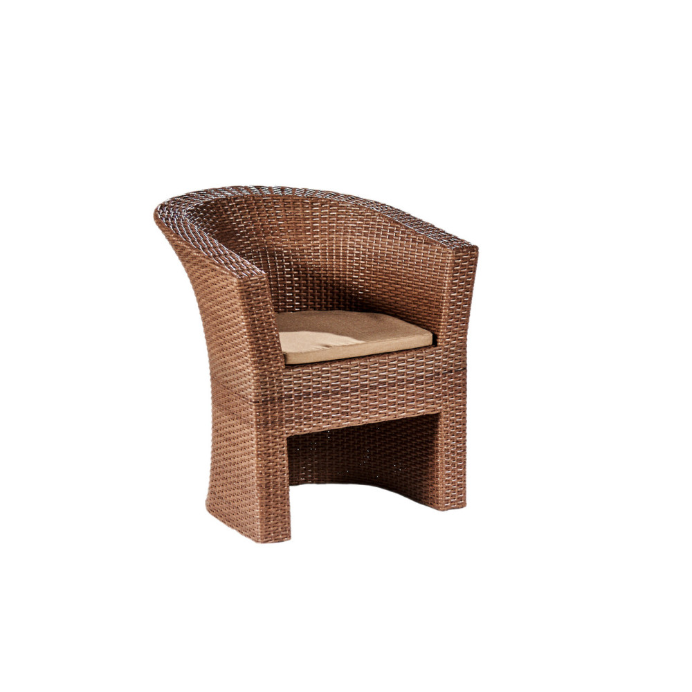 Вишукане крісло з ротангу РОДЗИНКА прекрасно доповнить інтер'єр ресторану, будинку, веранди чи літньої тераси. Його круглі форми створять атмосферу затишку та комфорту. Вигнута спинка та широкі пологі підлокітники не залишать Ваших гостей байдужими. Крісло легке у догляді, адже виготовлене із штучного ротангу, який не піддається впливу УФ-променів, зміни вологості та перепадів температури. Основа ротангового крісла - металевий каркас. Для підвищення комфорту додається подушка.