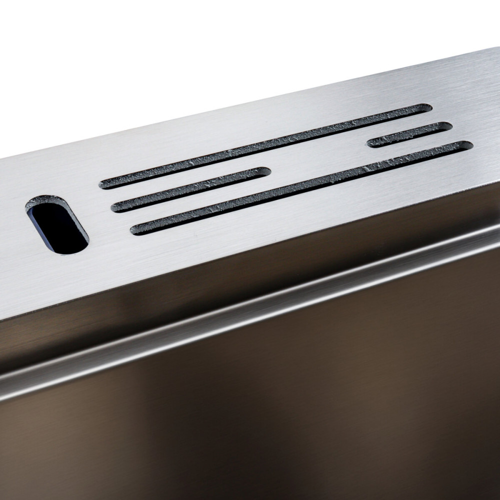 Ця врізна мийка постачається з повним комплектом, включаючи кошик, сифон, дозатор, кріплення та підставку для ножів, щоб зробити ваші кулінарні приготування ще зручнішими. Для монтажу потрібна ширина стільниці не менше 500 мм, щоб забезпечити безпроблемну інтеграцію.