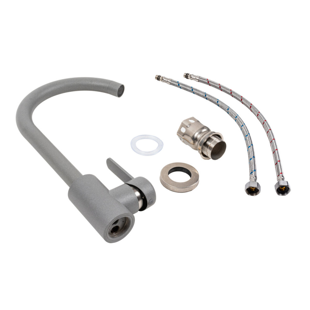 Підкресліть свою кухню естетикою та практичністю завдяки змішувачу Platinum 7990 NEST Сірий Металік! Виготовлений з нержавіючої сталі, цей стильний змішувач поєднує в собі дивовижний зовнішній вигляд та надійність.