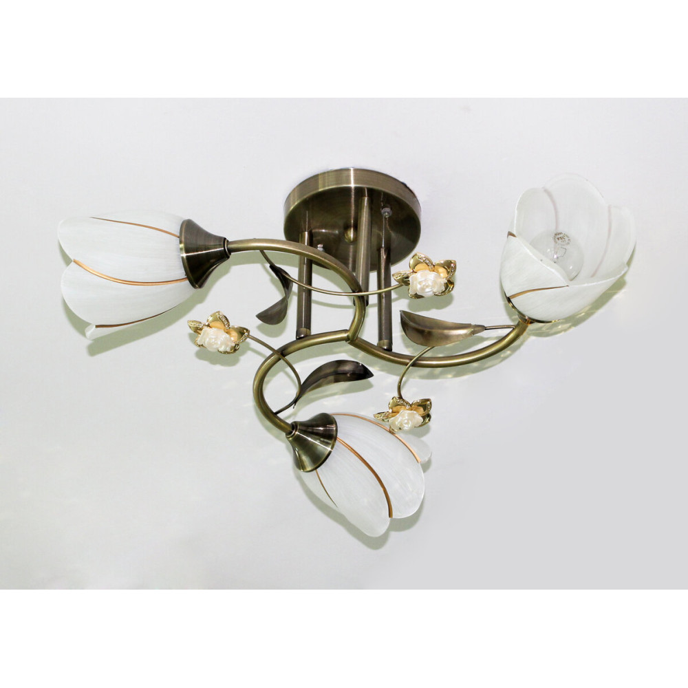 Три плафони зі скла білого кольору мають форму квітки, що надає їм ніжності та ефектності. Крім того, сама люстра прикрашена квітковими елементами, які створюють особливий шарм.