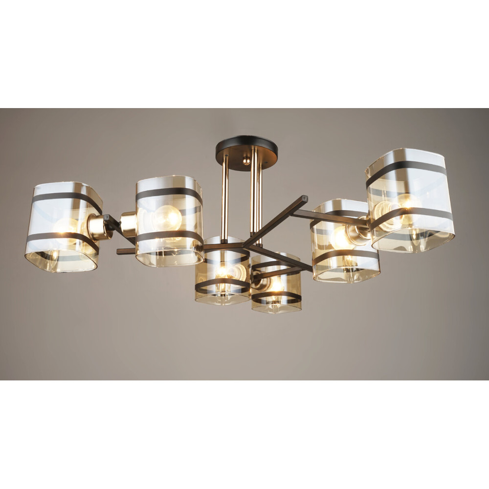 Шість плафонів зі скла в позолоченому відтінку з чорними лініями – це не просто джерела світла, це справжні твори мистецтва. Вони роблять кожен момент особливим, надаючи приміщенню неповторний шарм.