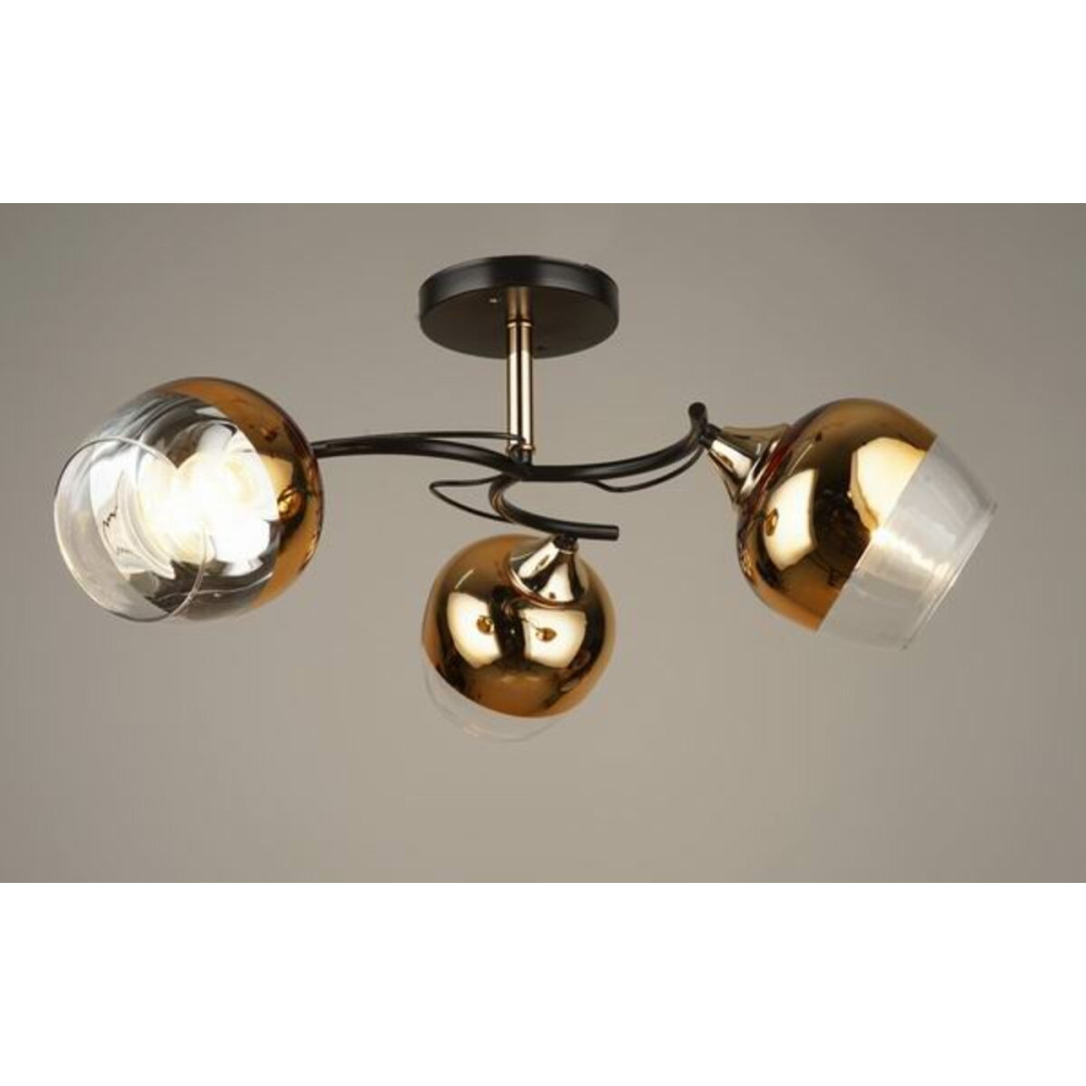 З довжиною 520 мм, шириною 520 мм і висотою 230 мм, Sirius B N4100/3 BK+FGD вражає своєю елегантністю. Каркас з металу в чорному кольорі з позолотою додає особливий шарм і розкоші. Три круглі плафони виготовлені зі скла, яке позолочене, створюючи чарівну гру світла і тіней. Цоколь E27 дозволяє використовувати лампочки потужністю до 60 Ватт, і не забувайте, що вибір лампочки впливає на колірне температурне освітлення, яке може бути як теплим, так і холодним.