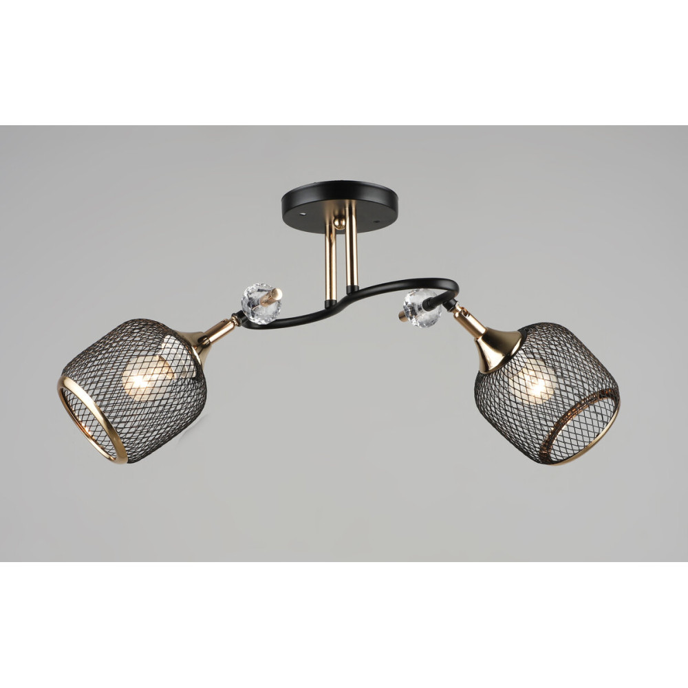 Каркас виготовлений з металу в чорному та позолоченому кольорі, що надає люстрі сучасний і стильний вигляд. Два чорні плафони металевою сіткою, додають вишуканості до дизайну.