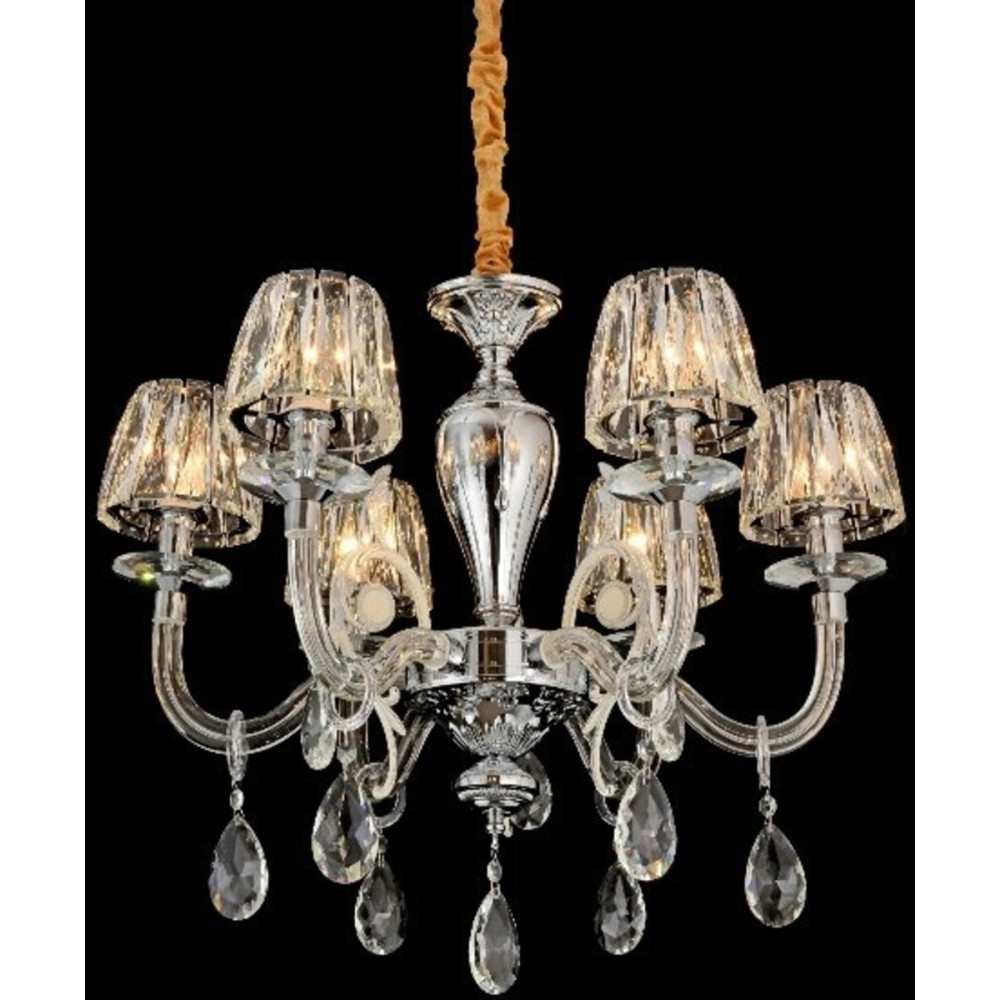 Завдяки своїм величним розмірам - довжина 680 мм, ширина 680 мм та висота 540 мм - ця люстра буде центральним елементом вашого інтер'єру, привертаючи увагу кожного, хто крокує в вашу оселю. Каркас із металу хромового кольору виражає сучасний шарм та стійкість до часу.