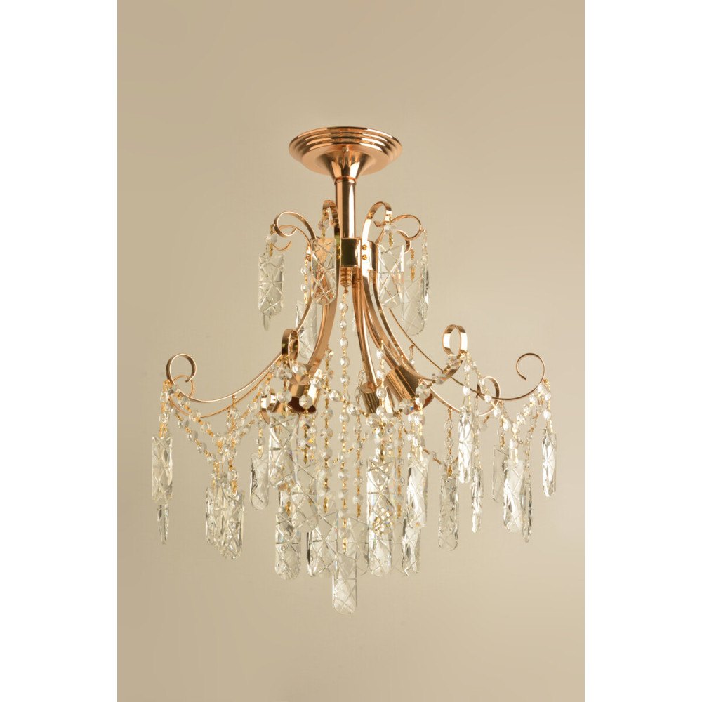 Кришталева люстра на 4 лампочки з золотим основою і прозорими підвісками надає достатньо світла для освітлення середнього приміщення. Вона створює романтичну атмосферу, переповнену блиском і елегантністю.Також в нашому ассортименті и можете знайти багате різноманніття люстр на будь який стиль та смак .