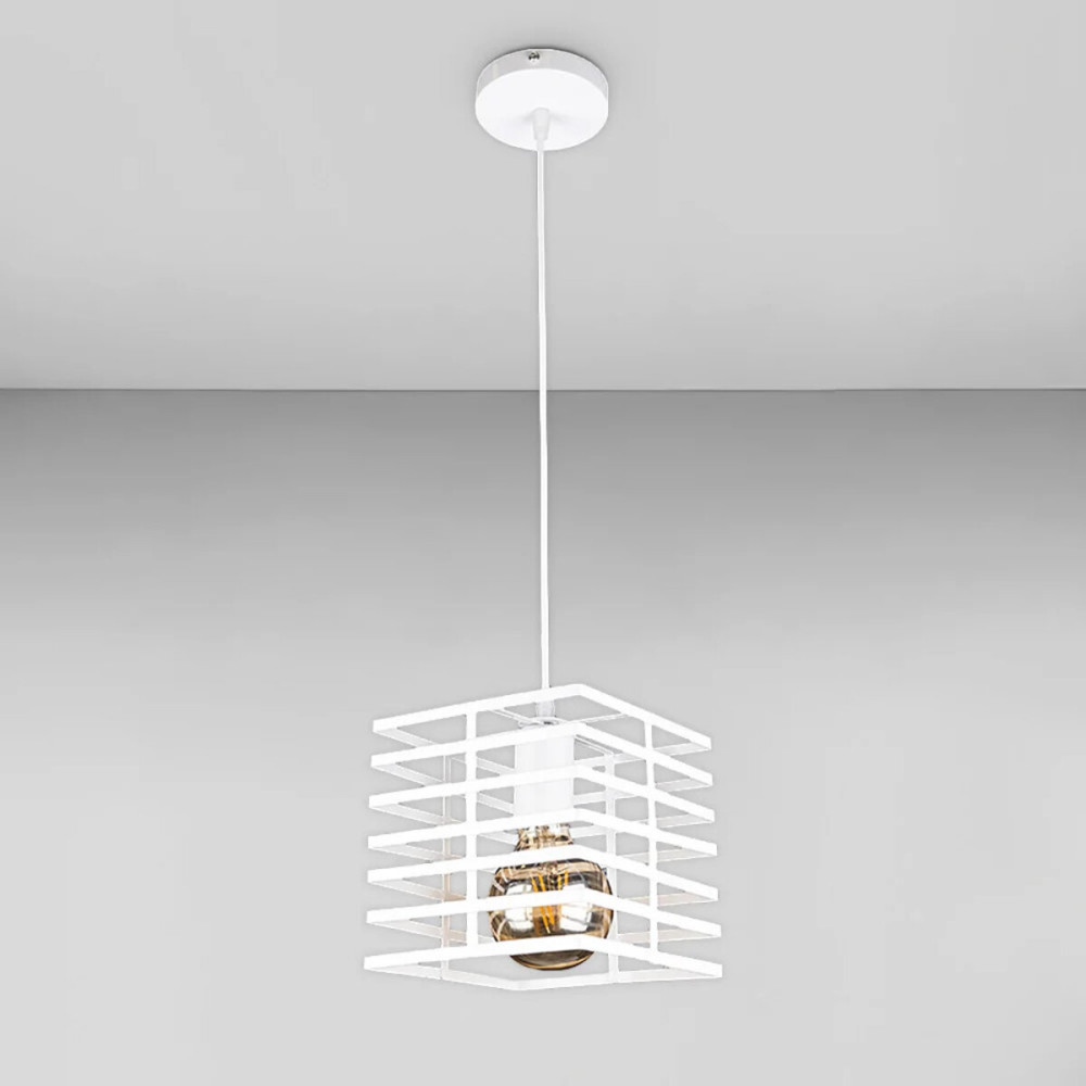 Завдяки оригінальному дизайну, ця підвісна люстра додасть вашому приміщенню елегантності та характеру. Вона має квадратну форму та виготовлена з міцного металу, що гарантує її тривалу службу.Білий колір підвісу додає контрасту та глибини, вирізняючи її серед інших деталей інтер'єру.