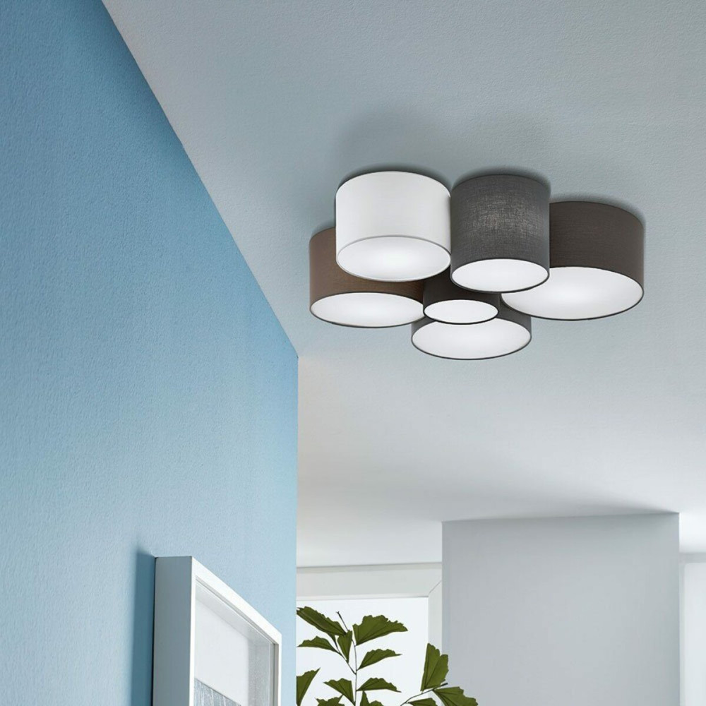 Світло спрямоване вниз, створюючи приємне та затишне освітлення, ідеальне для спальні, вітальні, кафе, магазинів та інших середніх розмірів приміщень. Різнобарвні текстильні плафони додають життєвого кольору та індивідуальності вашому інтер'єру.
