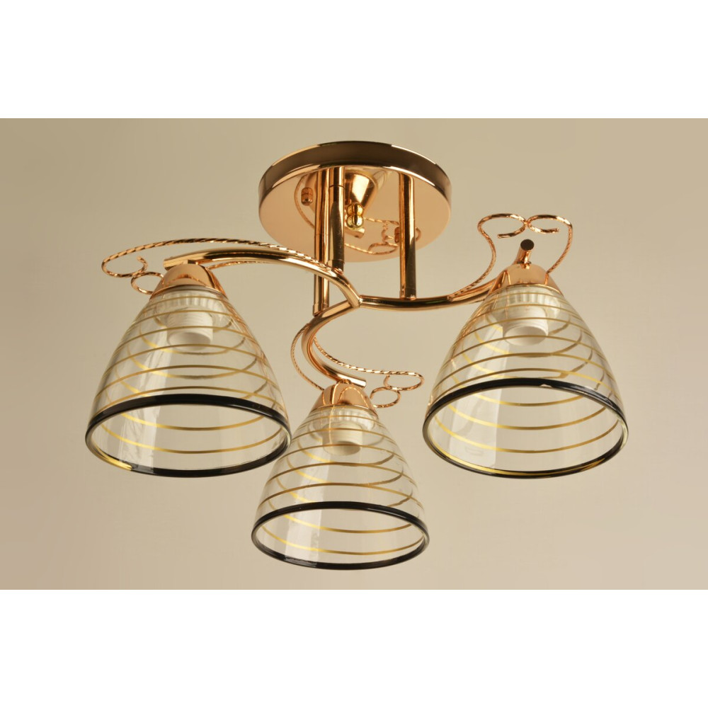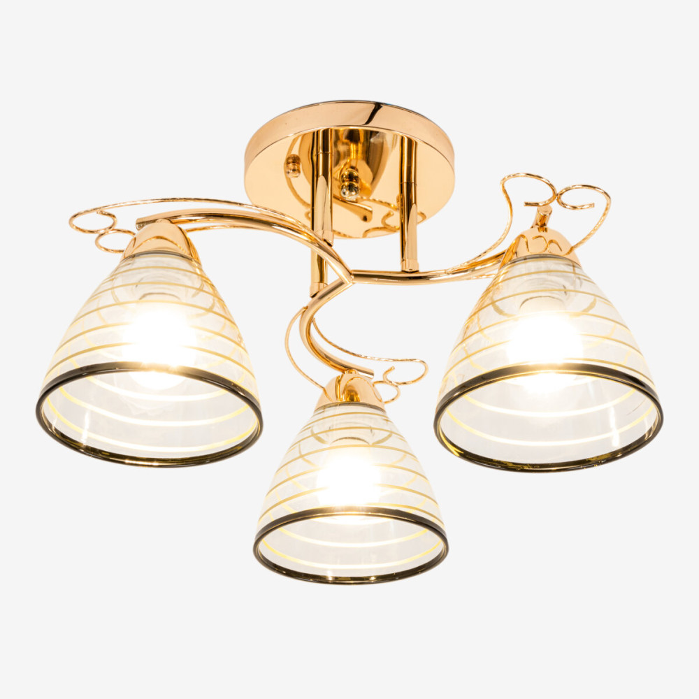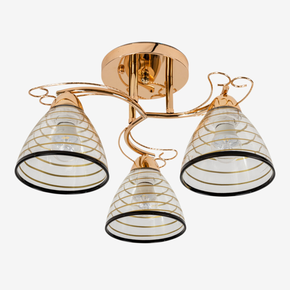 Люстра оснащена трьома плафонами, виконаними з якісного скла. Скляні плафони забезпечують рівномірне розподілення світла і створюють приємну атмосферу у приміщенні. Вони прозорі, дозволяючи світлу без перешкод проникати, що створює м'яке і приємне освітлення.