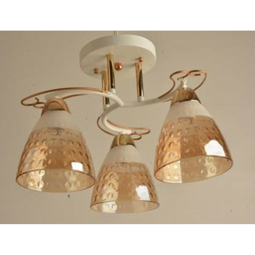 Каркас люстри виготовлений з металу, що забезпечує його міцність і довговічність. Металевий каркас надає люстрі стійкості та стабільності. Плафони виконані з якісного скла, яке розсіює світло рівномірно .