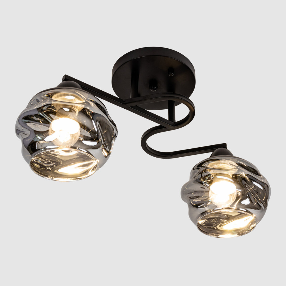 Люстра Sirius Л 8060/2А - це стильний освітлювальний прилад з двома плафонами. Каркас люстри виготовлений з металу чорного кольору, що надає йому сучасний і елегантний вигляд.