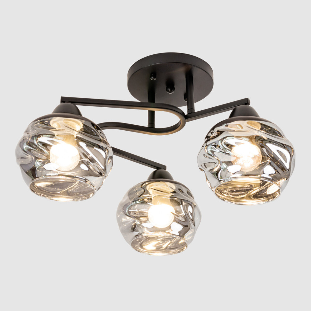Люстра Sirius Л 8060/3А - це стильний освітлювальний прилад з трьома плафонами. Каркас люстри виготовлений з металу чорного кольору, що надає йому сучасний і елегантний вигляд.
