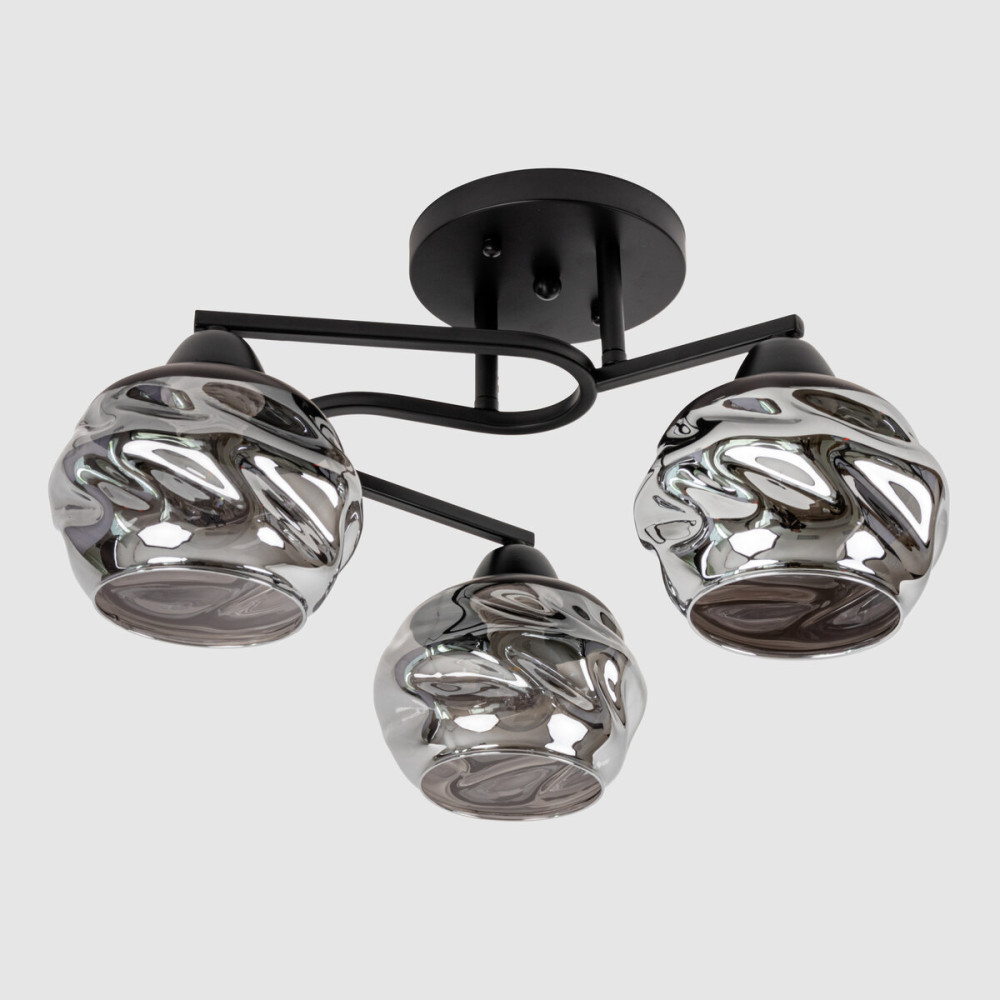 Плафони лампи мають колоподібну нерівну форму і виготовлені зі скла в хромовому кольорі. Ця нерівна форма додає особливої привабливості і оригінальності до плафонів, а хромове скло створює ефектну гру світла і відображень.