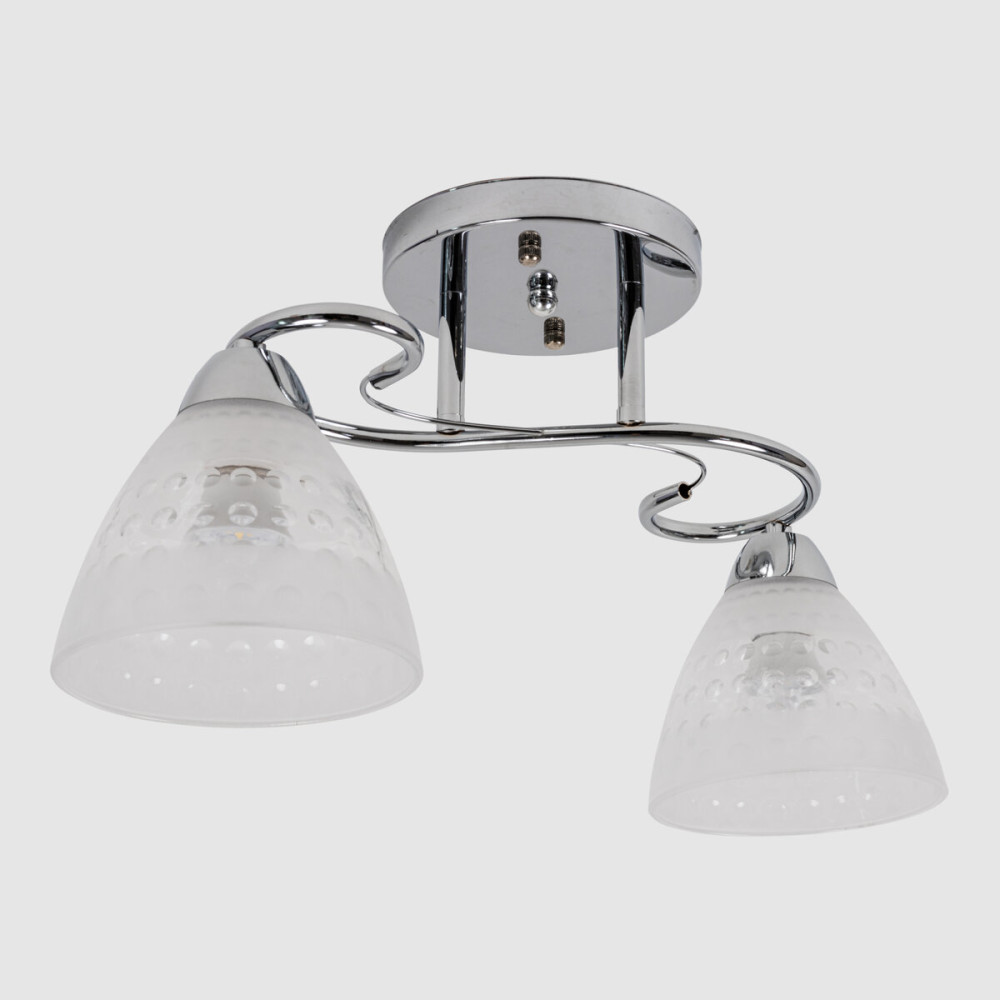 Загальний вигляд люстри Sirius Л 8065/2 є стильним і сучасним. Металевий каркас в срібному кольорі додає люстрі елегантності і витонченості. Прозоро-білі плафони створюють свіжий і чистий вигляд, підкреслюючи сучасний дизайн. Ця люстра стане відмінним доповненням до вашого інтер'єру, надаючи йому яскравості і стилю.Також в нашому ассортименті ви зможете знайти такі самі люстри тільки на різну кількість плафонів та кольорів,все для ваших приміщень та вподобань.