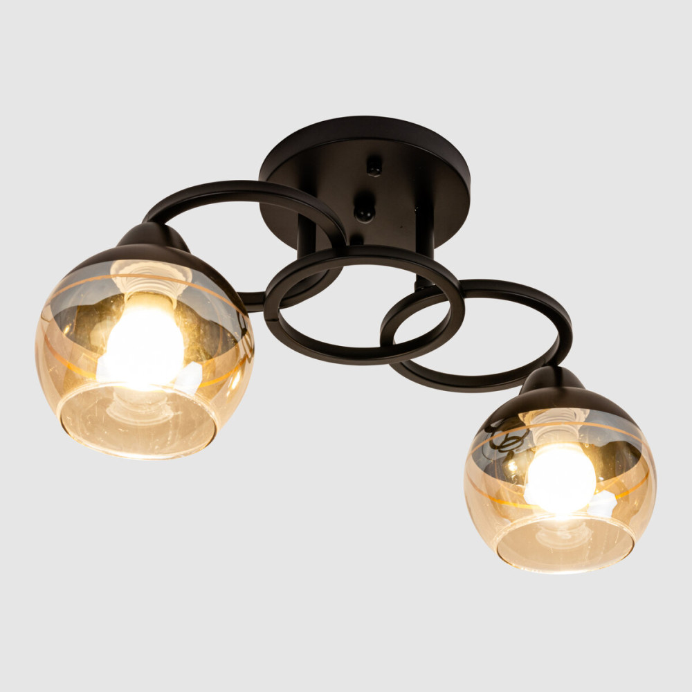 Загальний вигляд люстри Sirius Л 8079/2А є сучасним і стильним. Чорний металевий каркас в поєднанні зі скляними плафонами в чорному та прозоро-золотистому кольорах надає люстрі неповторний і ефектний вигляд. Ця люстра створить приємну атмосферу освітлення та стане відмінним доповненням для вашого інтер'єру.Також в наявності ми маємо такі люстри з різною кількістью плафонів та кольорів !