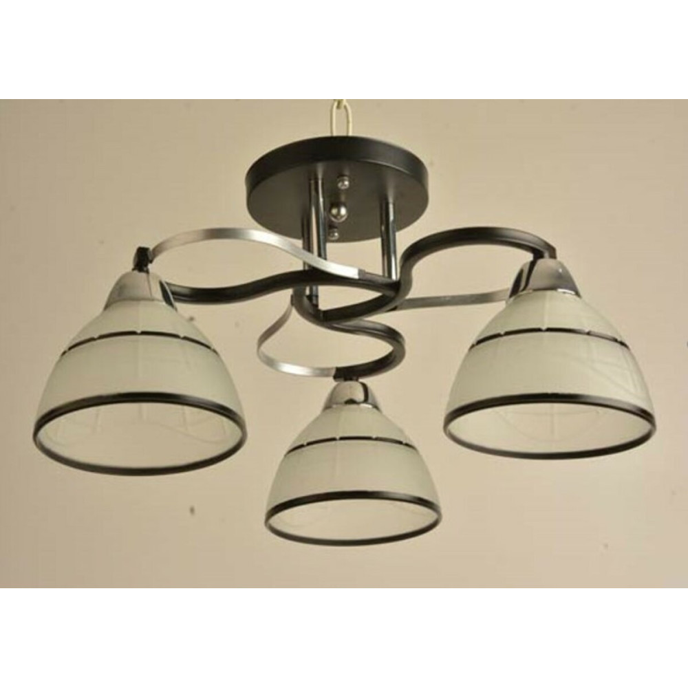 Люстра Sirius Л 8082/3 є стильним освітлювальним приладом з трьома плафонами. Каркас люстри виконаний з металу і має чорний колір, що надає їй елегантного вигляду.
