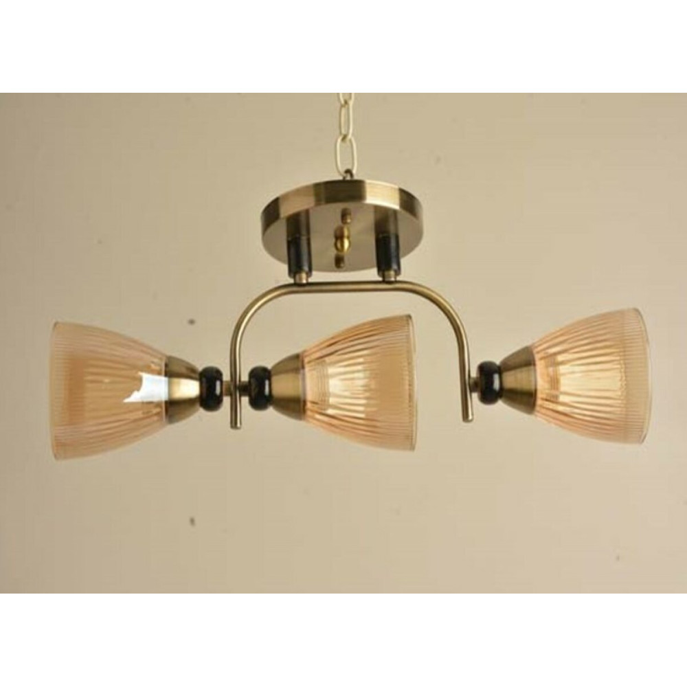 Загальний вигляд люстри Sirius Л 8083/3А є стильним і затишним, а комбінація металевого каркасу мідного кольору зі скляними плафонами золотистого кольору створює особливу атмосферу освітлення і прикрашає будь-яке приміщення.