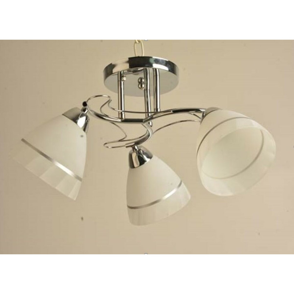 Люстра Sirius Л 8086/3 є стильним освітлювальним приладом з трьома плафонами. Каркас люстри виготовлений з металу в хромовому кольорі, що надає йому сучасний і елегантний вигляд.