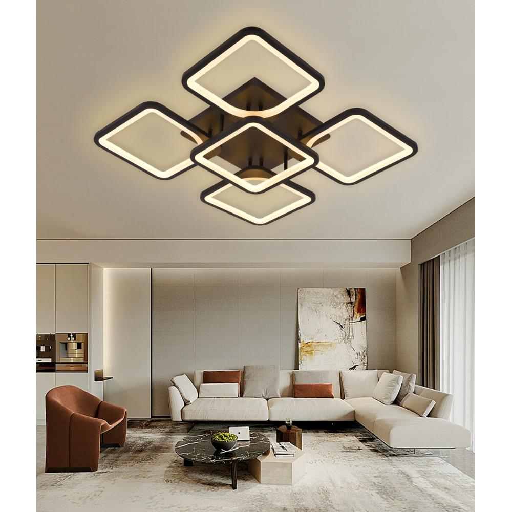 Пізнайте у магію світла з Sirius 6112-5 BK 86W - справжнім символом стилю та сучасності в освітленні. Ця світлодіодна люстра, з довжиною 600 мм, шириною 600 мм та висотою 110 мм, не лише освітлює, але й творить неповторну атмосферу.