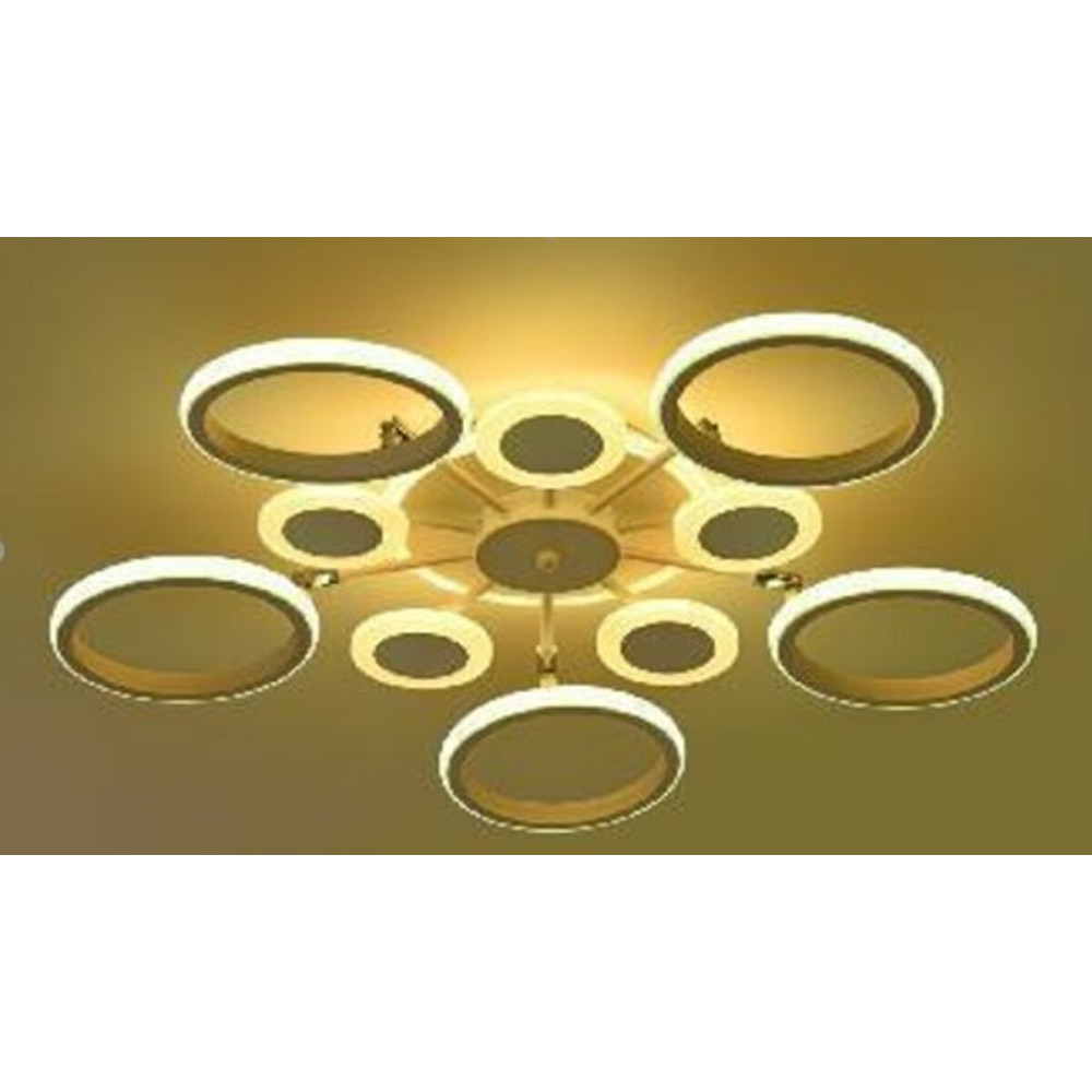 Завдяки дивовижним розмірам - довжина 710 мм, ширина 710 мм та висота 100 мм, ця люстра стає центральною фігурою в вашому інтер'єрі. Десять акрилових плафонів золотистого кольору додають особливий шарм та вишуканість.