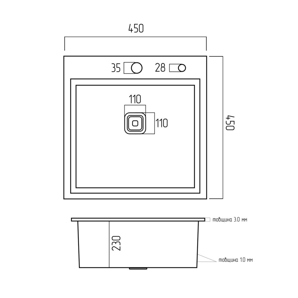 отвір під змішувач та дозатор