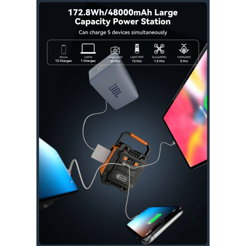 Flashfish A201 - це портативне, компактне та практичне джерело живлення з потужністю 172,8 Втч (48000 мАч/ 3,65 В) для зарядки електронних пристроїв.