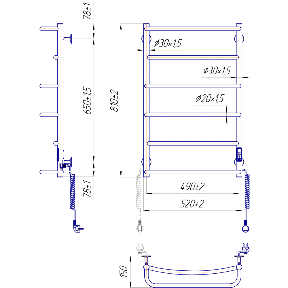Электросушилка для полотенец бытовая Люкс НР-І 800х530/150 TR К.Оборудована таймером-регулятором и коннектором для подключения в розетку с любой стороны. Совместима с комплектом скрытого подключения.Имеет 6 ребер и стояк из круглой трубы.Изготовлен из полированной нержавеющей стали без хромирования. Варианты покрытия: полированный или сатин, черный мат, белый глянец, золото, бронза.Температурные режимы таймер-регулятора: 40°С, 45°С, 50°С. Варианты времени: 3, 6 часов и постоянный нагрев. Мощность 105 Вт.Дополнительно для удобства использования можно оснастить навесными крючками.Гарантия – 5 лет.